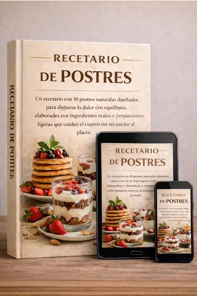 Un recetario con 50 postres naturales diseñados para disfrutar lo dulce con equilibrio, elaborados con ingredientes reales y preparaciones ligeras que cuidan el cuerpo sin renunciar al placer.